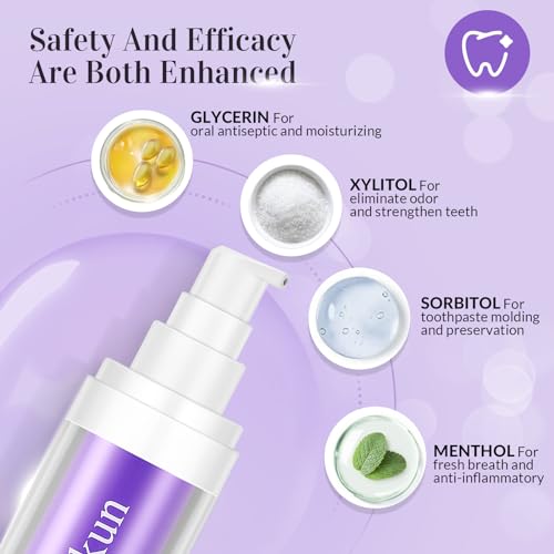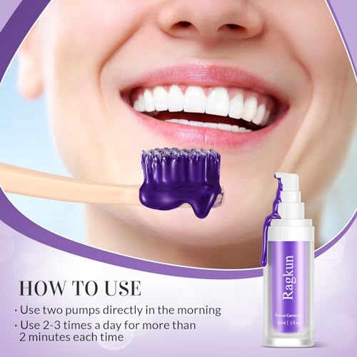 【Easy To Use And Carry】Ragkun color corrector purple toothpaste comes in a 30ml capacity and weight 3.52oz.It is small, lightweight and easy to use with a pump, making it ideal for on-the-go and travel use.